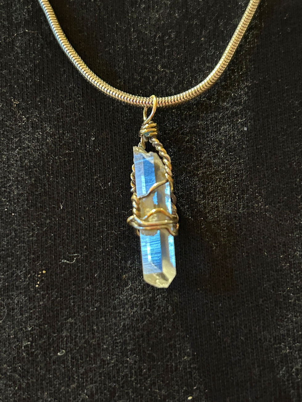 My wife Elaine was born in Springfield, Illinois, but at a very early age, her family moved to Ann Arbor, Michigan, where she was raised, and where we got married. Over the years, we have visited Ann Arbor to see family, etc. On one of those visits around thirty years ago, on a little foray to the Ann Arbor Farmers Market, we came across a table where a nice Jewish girl, presenting herself as D. Marx, was selling jewelry that she made. A neck chain pendant with a small crystal caught my eye. I had begun my studies at the Karin Kabalah Center in Atlanta, and crystals were all the rage. I had been wearing around my neck a rudraksha mala for several years, representing the Veda tradition, and a mezuzah, representing the Torah tradition. It was time for a companion crystal to join them, representing the Western Esoteric tradition as taught at Karin, and that little pendant called out to me to fit the bill.